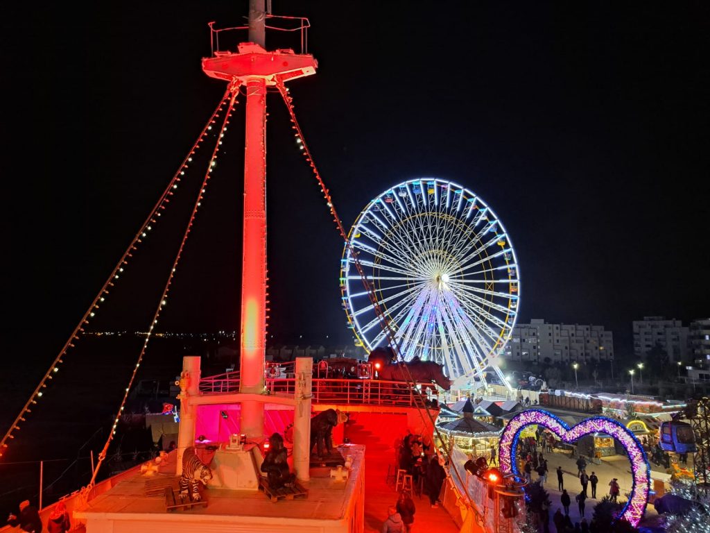 🎡🎄🎅 El Village Du Noël se encuentra en la zona de El Lydia, un buque de 90 metros varado en la playa.