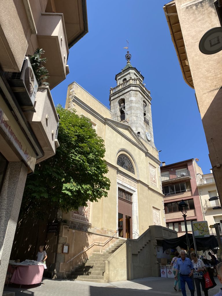 En nuestra paseo por el pueblo visitamos la iglesia de Sant Hilari de origen románico pero reformada en el siglo XIX. El balneario de la Font Vella, la plaza mayor y acabamos en un tornero donde nos hicieron una peonza in situ con un trozo de madera de castaño.