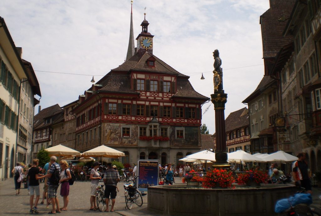 Junto a la plaza del mercado se encuentra la oficina de turismo, donde nos dan un mapa de todos los rincones de Stein Am Rhein y muchísima información sobre sus casas y casco antiguo.