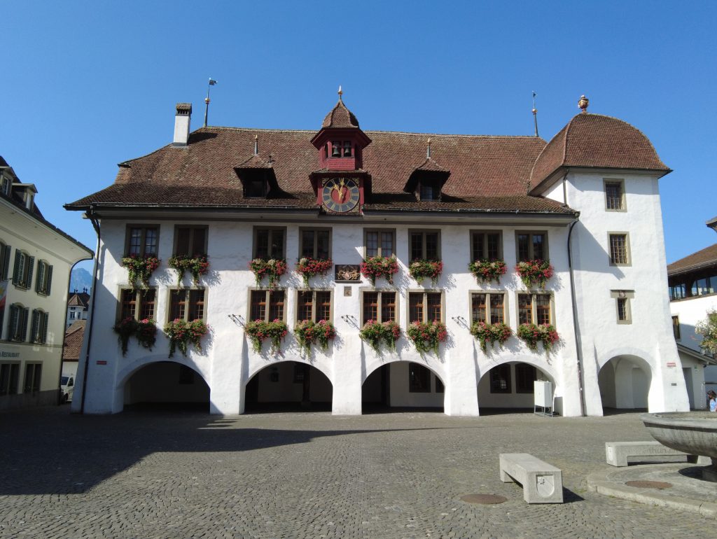 Salimos de la oficina de turismo y lo primero que vamos a visitar la Rathausplatz que es la plaza del ayuntamiento, una plaza construida sobre el año 1500, aquí podemos contemplar su su ayuntamiento, un edificio precioso para este pueblo con mas de 43.000 habitantes.