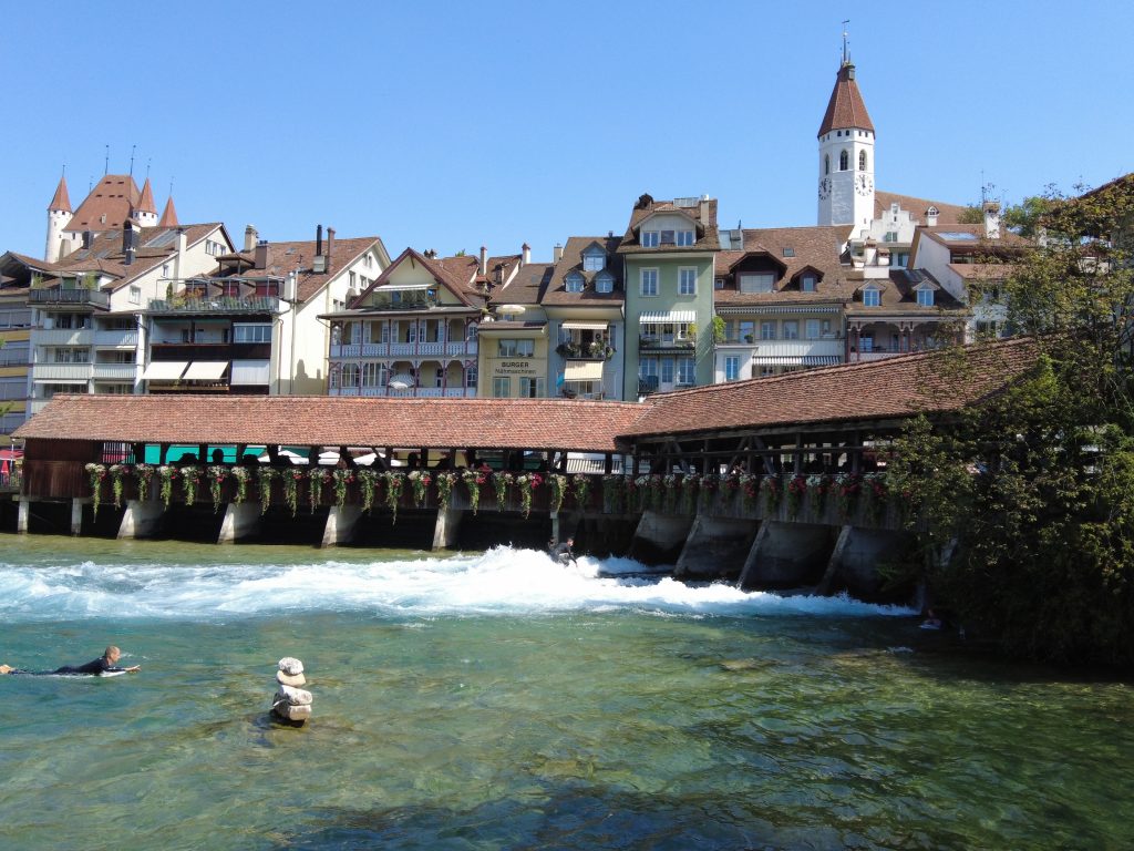 Ahora visitamos el segundo puente, el Untere Scheleuse ( compuerta inferior) también peatonal, un buen sitio para hacer una parada y contemplar su belleza y la de la ciudad de Thun.